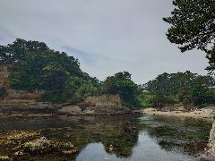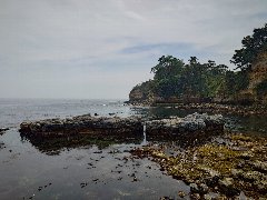 五浦岬公園からの五浦海岸 (六角堂が見えます) |