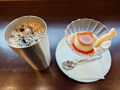 「ナリ夢工房」のアイスコーヒーとねこプリン (雰囲気がよかったです) |