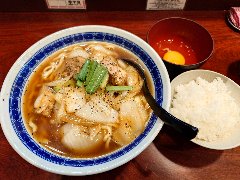 ![]() | 湯島駅から1分ほど、春日通り沿い、天神下の交差点の近くにあります。3階建ての建物の1階です。オレンジ色の看板が目立ちます。店内は、テーブルが4つ、牛丼屋風でした。土鍋鶏煮込み定食(骨なし)(980円)を注文しました。中国山東省の伝統料理だそうです。ご飯はおかわりできます。鶏煮込みは熱々の土鍋で出されます。人参、じゃがいも、しいたけ、生姜、鶏肉が入っていました。鶏肉は柔らかく具沢山です。シンプルな甘じょっぱい味付けで肉じゃがのような味わいでした。美味しかったです。他には、土鍋豚足煮込み定食、海鮮粥煮込み定食、土鍋魚煮込み定食などがありました。 |