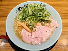 ![]() | 青物横丁駅から2分ほど、駅前の通り沿いにあります。2階建ての建物です。和知路大きめの看板です。店内は、カウンターが10、テーブルが4つありました。奥に細長いです。九条ねぎらーめん(1000円)を注文しました。九条ネギ、チャーシュー、メンマが入っていました。麺は細めのストレートです。スープは豚骨醤油に背脂が入っていました。やや甘めで少し辛味もありました。九条ネギはシャキシャキとして歯応えがいいです。チャーシューは大きめでした、材料には拘っているようです。美味しかったです。他には、めんくららーめん、魚介とんこつらーめん、味噌とんこつらーめんなどがありました。 |