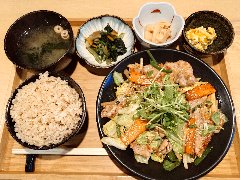 ![]() | 地下鉄の弘明寺駅から3、4分、旧鎌倉街道沿いにあります。2階建ての1階です。うぐいす色の暖簾が掛かっていました。店内は、テーブルが5つありました。スッキリした内装です。しょうが焼き(ロース160g)(1800円)を注文しました。しょうがの量と醤油の濃さを調整出来ます。ご飯、豚汁、漬物が付きます。しょうが焼きには大量のレタス、豚肉は林SPF、高知県の生姜を使っています。大きめの肉が4枚、柔らかくて旨味がたっぷり、適度な生姜の濃さでした。ご飯はやや少なめでした。美味しかったです。他には、四国香る合盛りしょうが焼き、カレー薫るしょうが焼き、旨塩ハンバーグなどがありました。 |